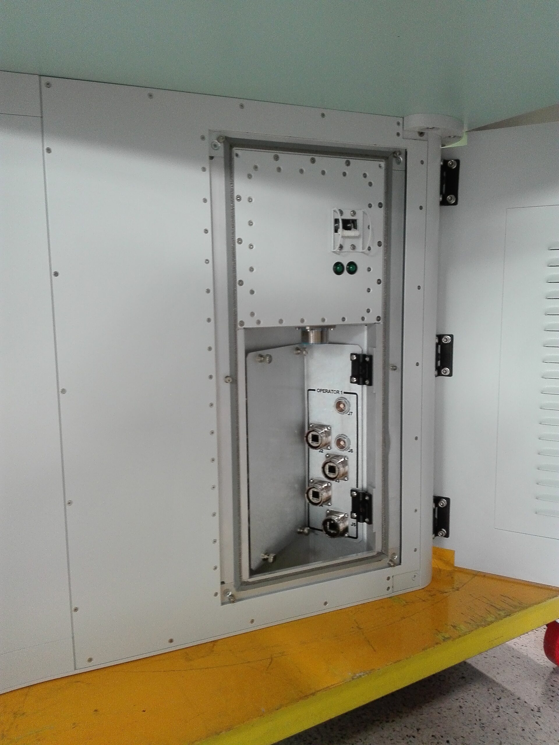 L’elemento in basso contiene un cestello ammortizzato che ospita il computer, il portello sul davanti presenta dei louvers che dopo il passaggio attraverso la griglia di tenuta per le emissioni elettromagnetiche (EMI) permette l’areazione, mentre il portello sul retro contiene il pacchetto ventole contenuto in un cassetto verticale rimovibile, sulle fiancate laterali è presente un portello che porta all’accesso dei cavi da poter collegare facilmente ai connettori necessari, su uno di questi accessi è presente il filtro EMI per l’alimentazione.