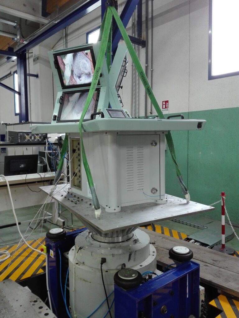 Designed for quick assembly, it is divided into three macroblocks (base, desk, and monitor) that can be connected with simple maneuvers, making it particularly functional in a naval environment. The base can be anchored using anchoring blocks that, when fixed to the floor, establish the stops to which it will subsequently be anchored. The desk is then placed on the base, and finally the monitors are mounted on the desk.